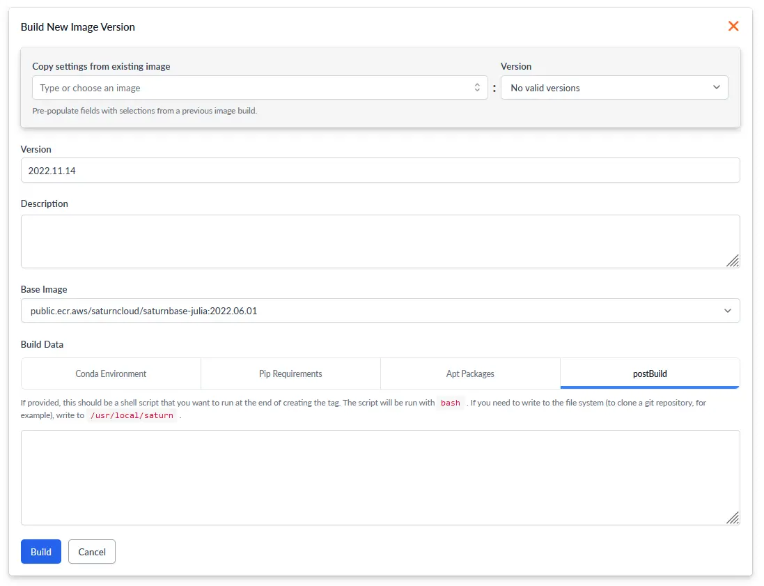 Everything running in Saturn Cloud runs in a Docker container. Bring your own docker images, or customize our images with the Saturn Cloud image builder. Developing in docker means your work is much more reproducible.